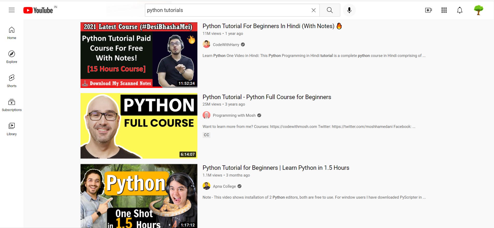 So i was clear that i wanted to learn Coding and in that Python . So the next thing i did was search on Youtube tutorials on Python. Here is what results were